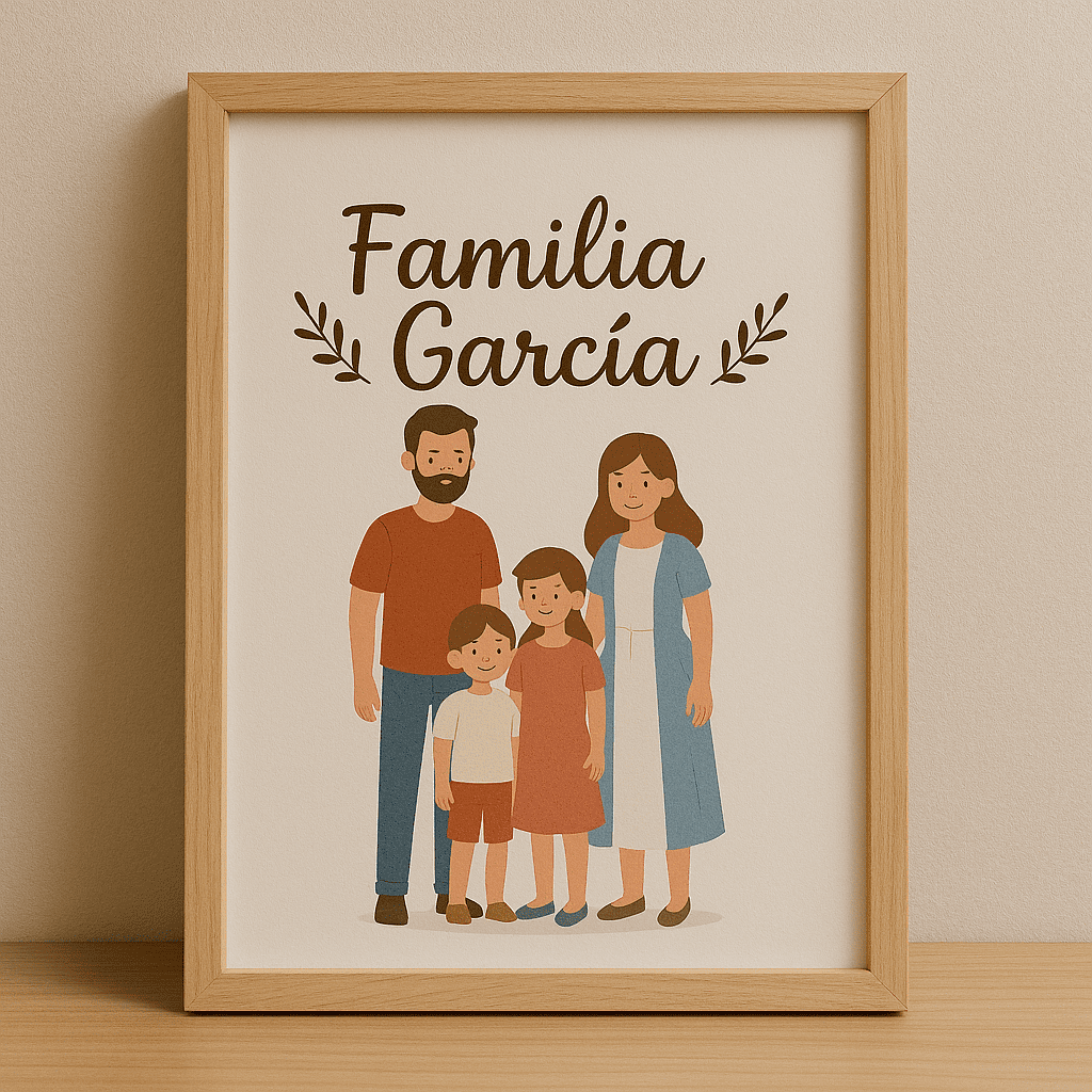 Cuadro ilustrado personalizado con miembros de la familia.