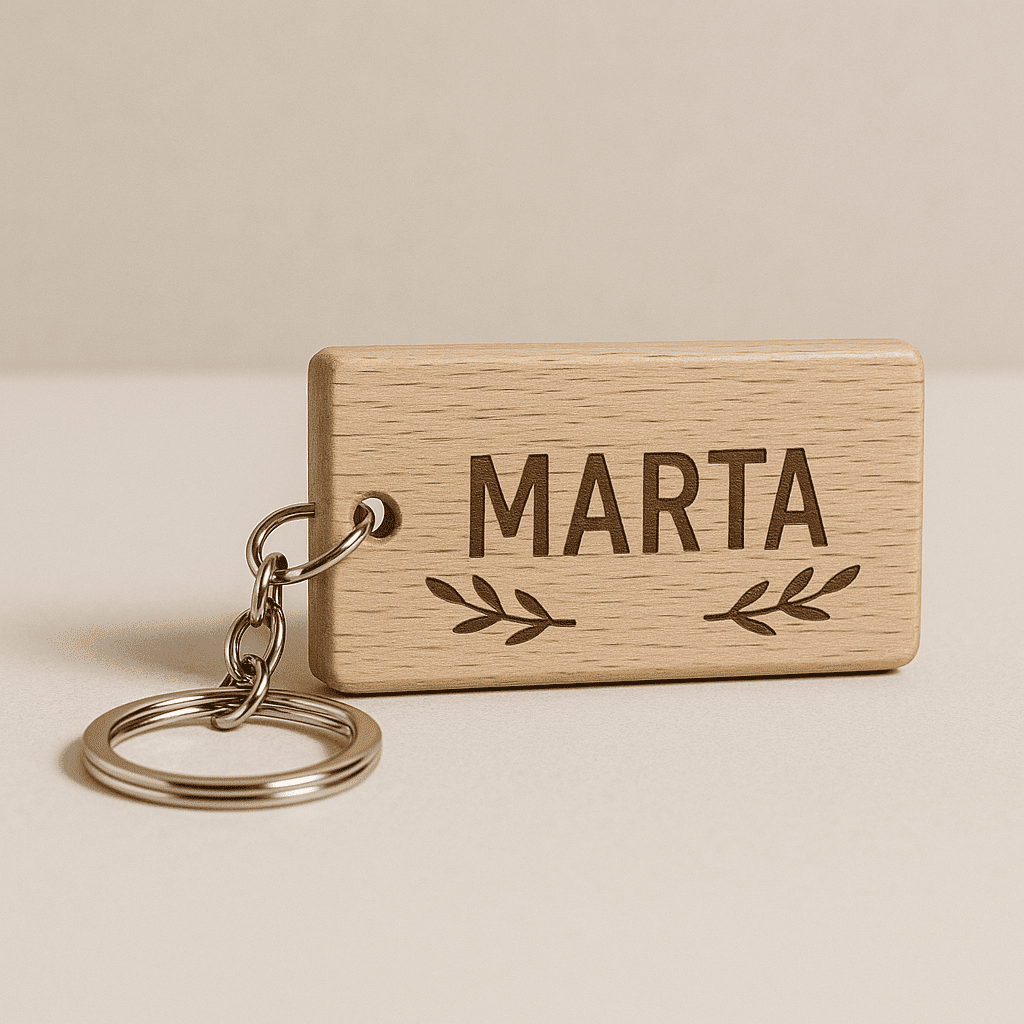 Llavero personalizado de madera grabada. Nombre: Marta.